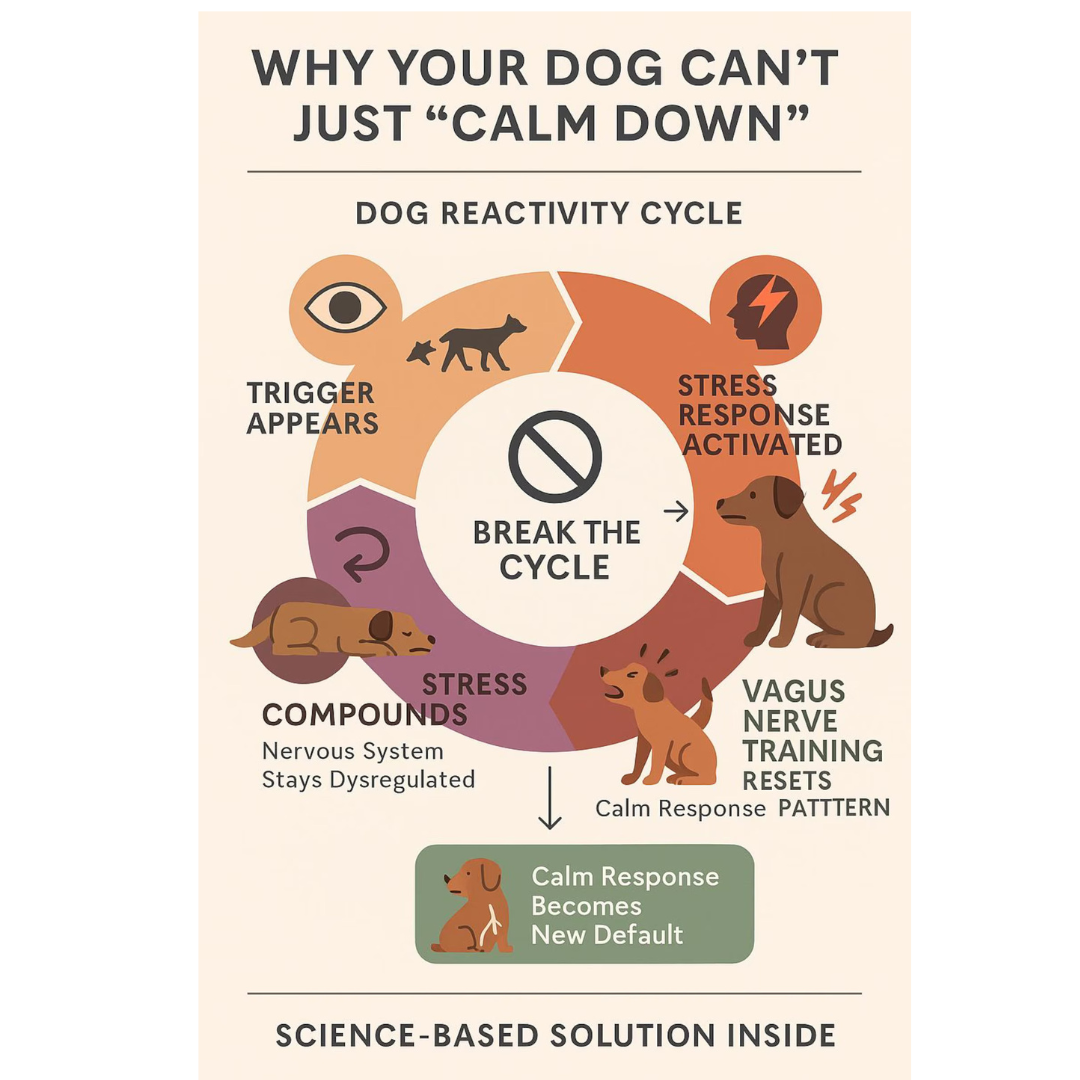 The 30-Day Vagus Nerve Reset restores nervous system regulation FIRST. Then—and only then—can your dog access the training you've already taught them.