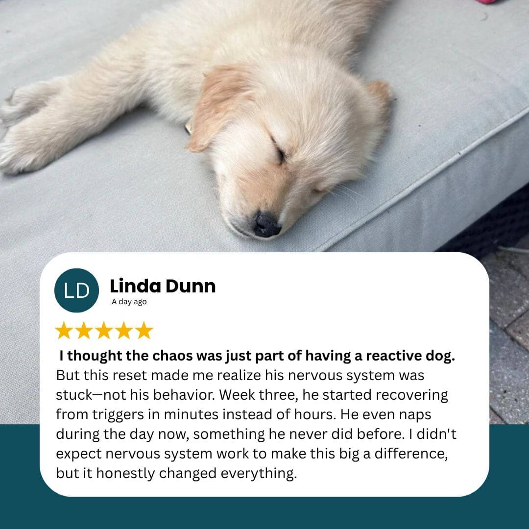 Saw their dog recover from triggers faster (minutes instead of hours) within 3-4 weeks